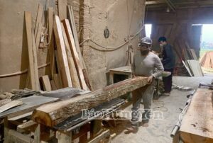 Không chỉ phục vụ sản xuất đồ mộc của gia đình, ông Hưng còn là đầu mối cung cấp gỗ nguyên liệu và thu mua sản phẩm nghề mộc, đầu ra cho nhiều hộ sản xuất sản phẩm mộc trong thôn, trong xã.